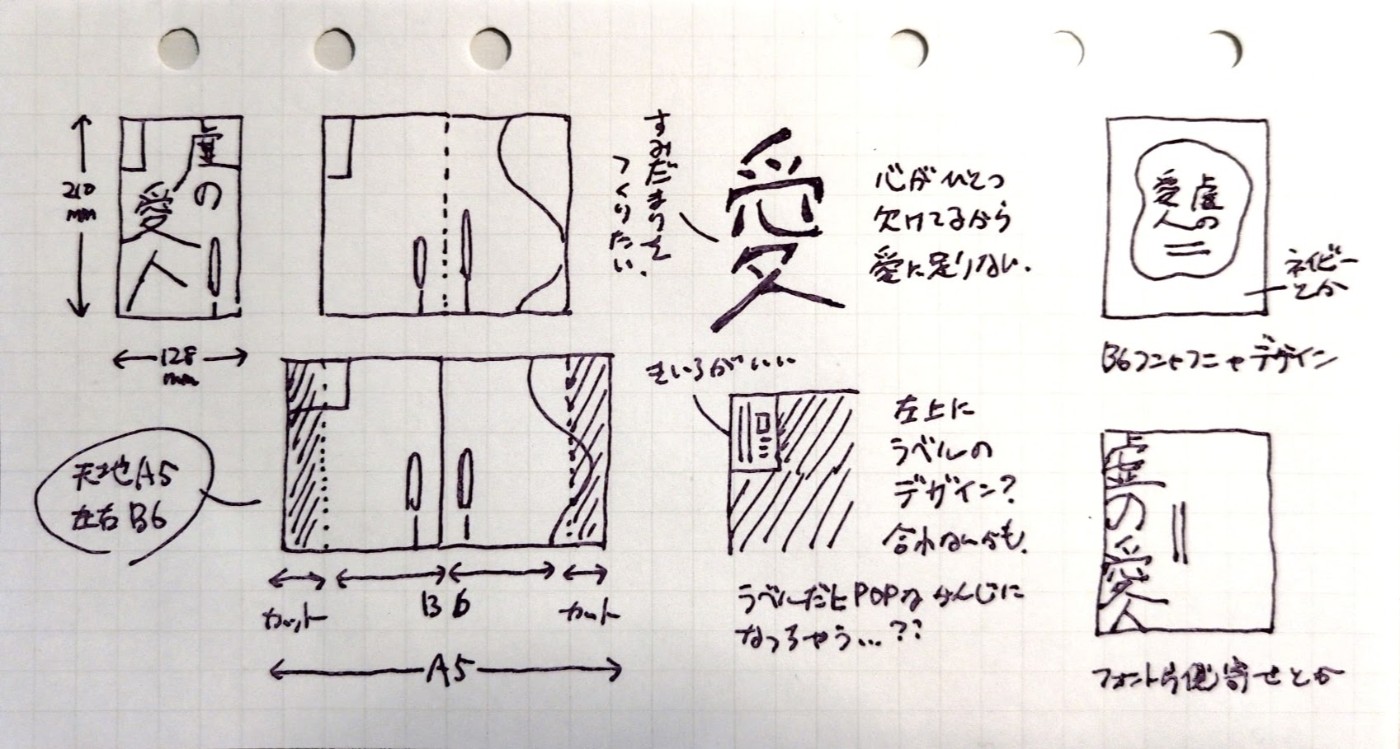 ↑ B6正方形にしようか…と思っていた時のラフ(サイズ感が可愛らしすぎると思ったのでボツ)