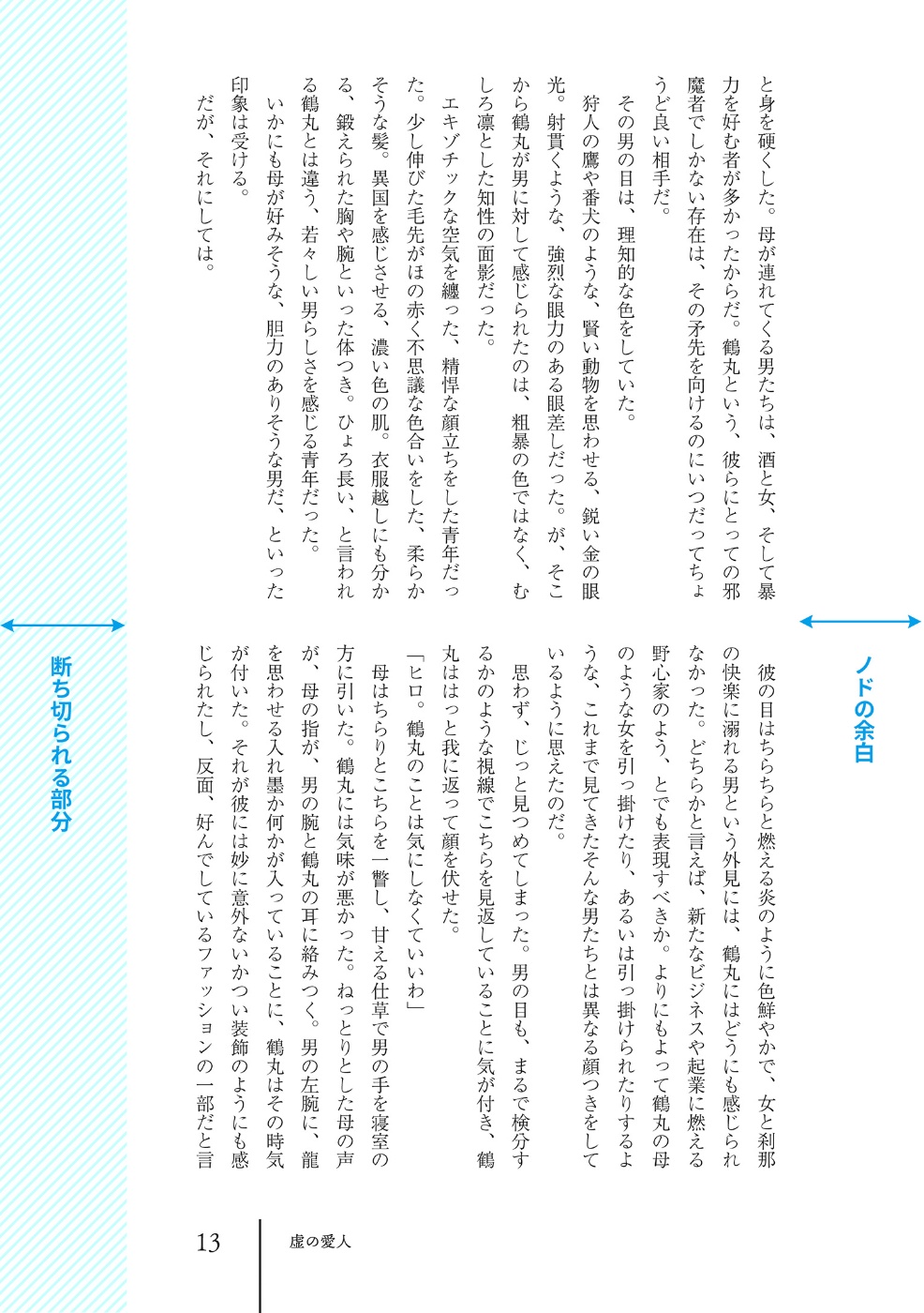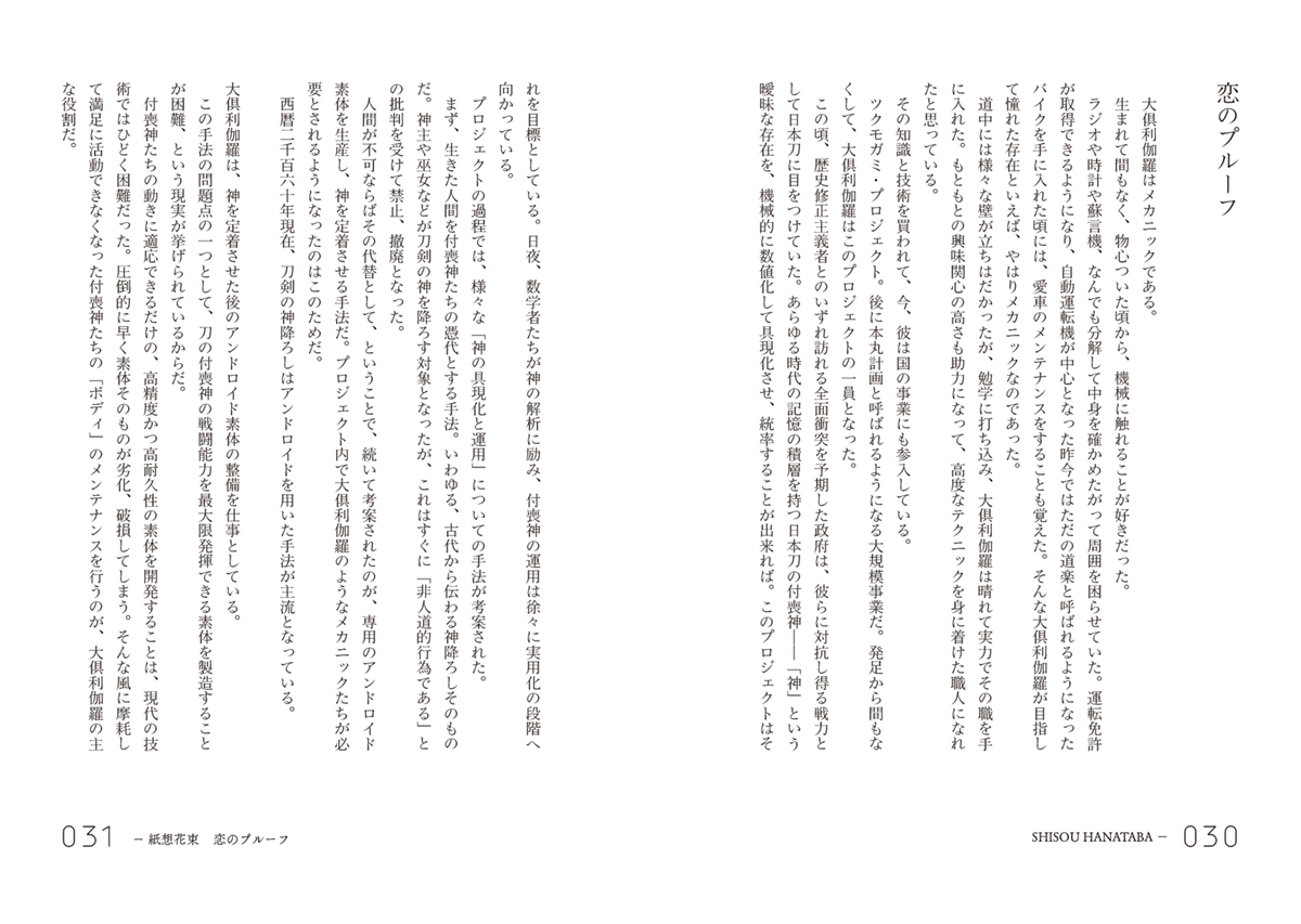 結果、文章一段あたりのブロックの高さも幅もちょうど良く仕上がったと思っています。同人誌の定番から外れすぎない、A5の2段組本と同じ感覚で読めるように出来たと思います。